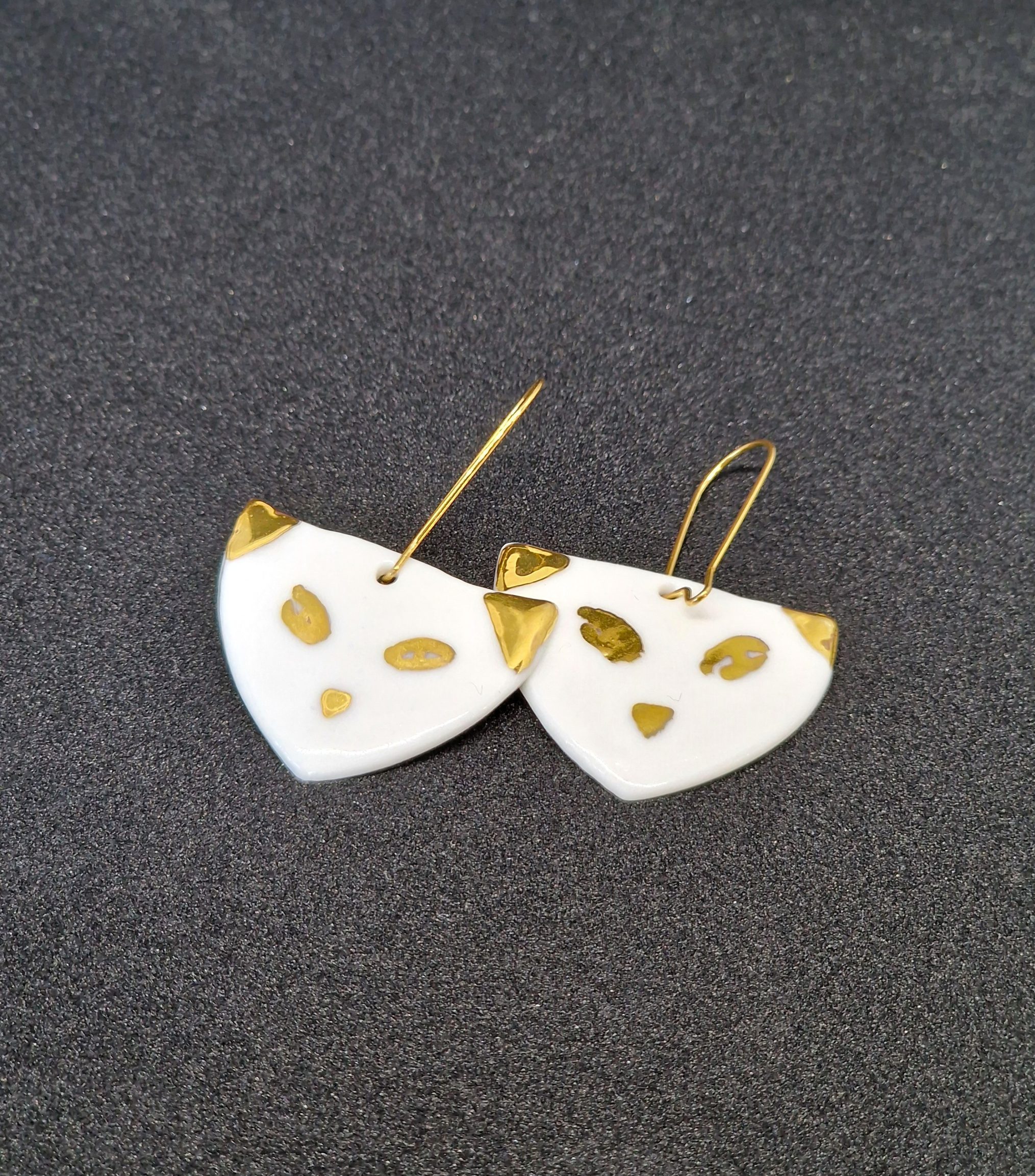 Add a touch of whimsy to your look with these exquisite earrings, where the timeless beauty of porcelain meets the luxurious allure of gold pigment in a delightful homage to our beloved furry friends.