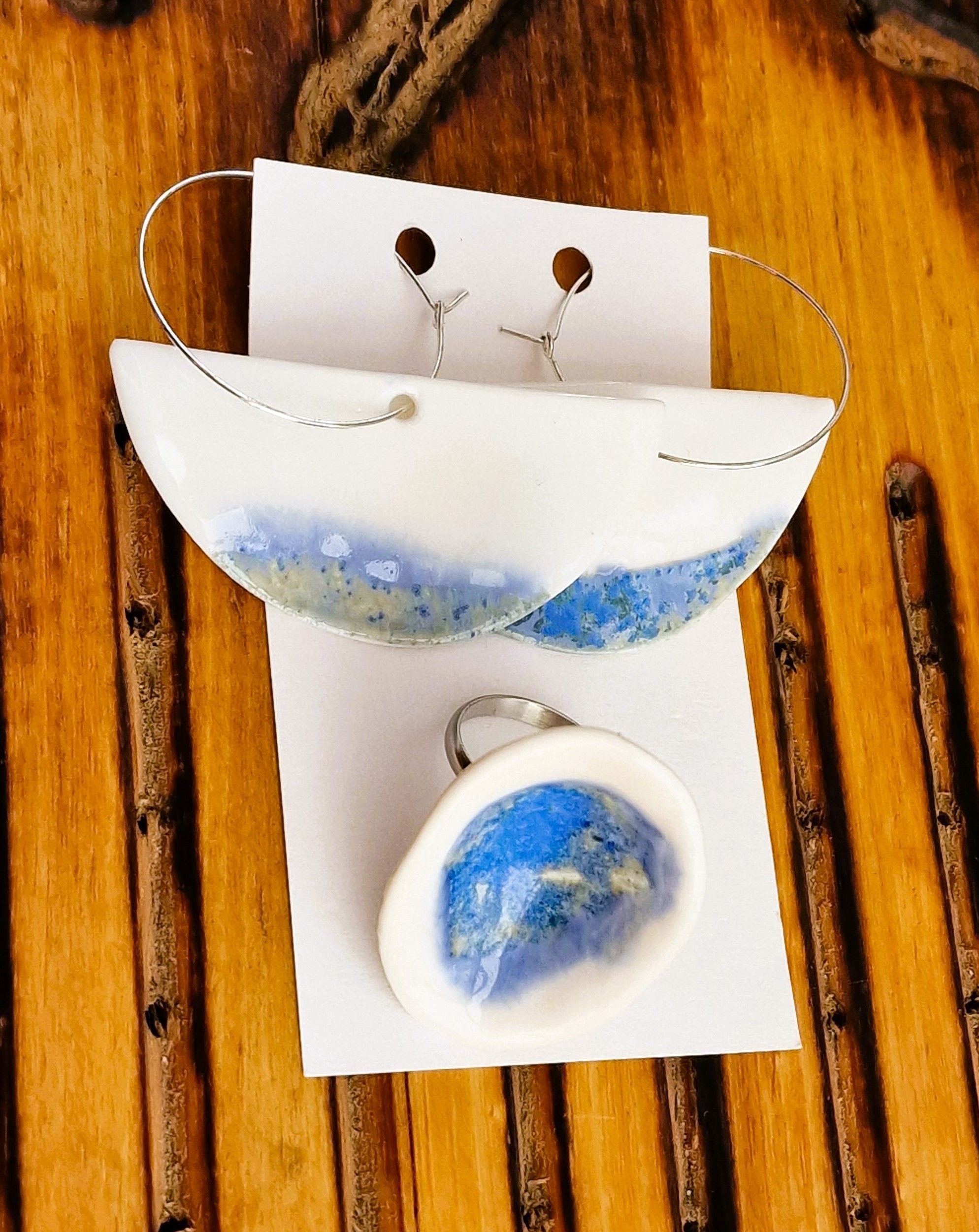 “Seashell Serenade” Porcelain Earrings & Ring