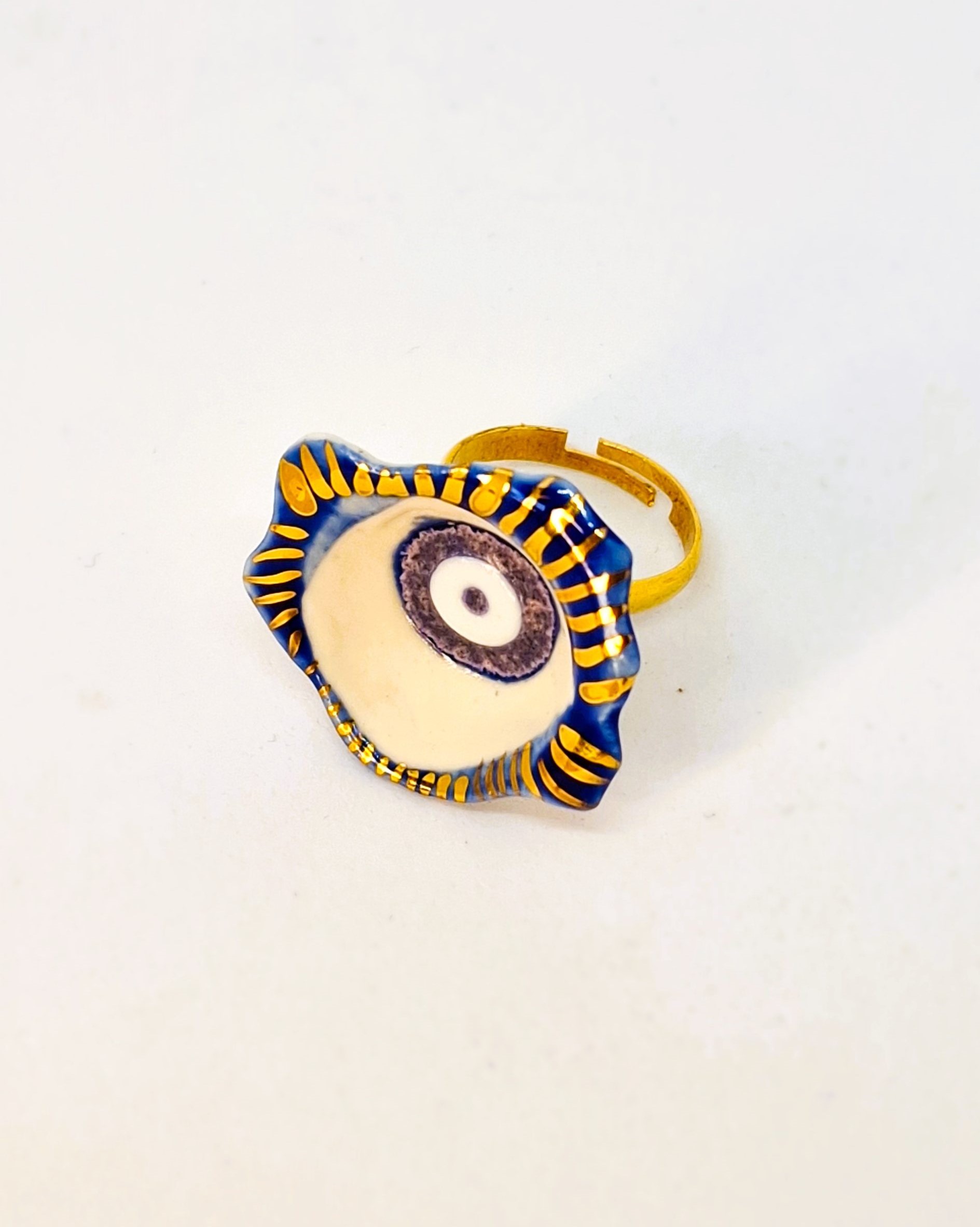 Adorn yourself with the elegance of our porcelain ring featuring a delicate white porcelain tulip shape embellished with intricate blue and gold pigment trim. Handcrafted with meticulous attention to detail, this ring is a true masterpiece, blending luxurious elements with natural beauty.